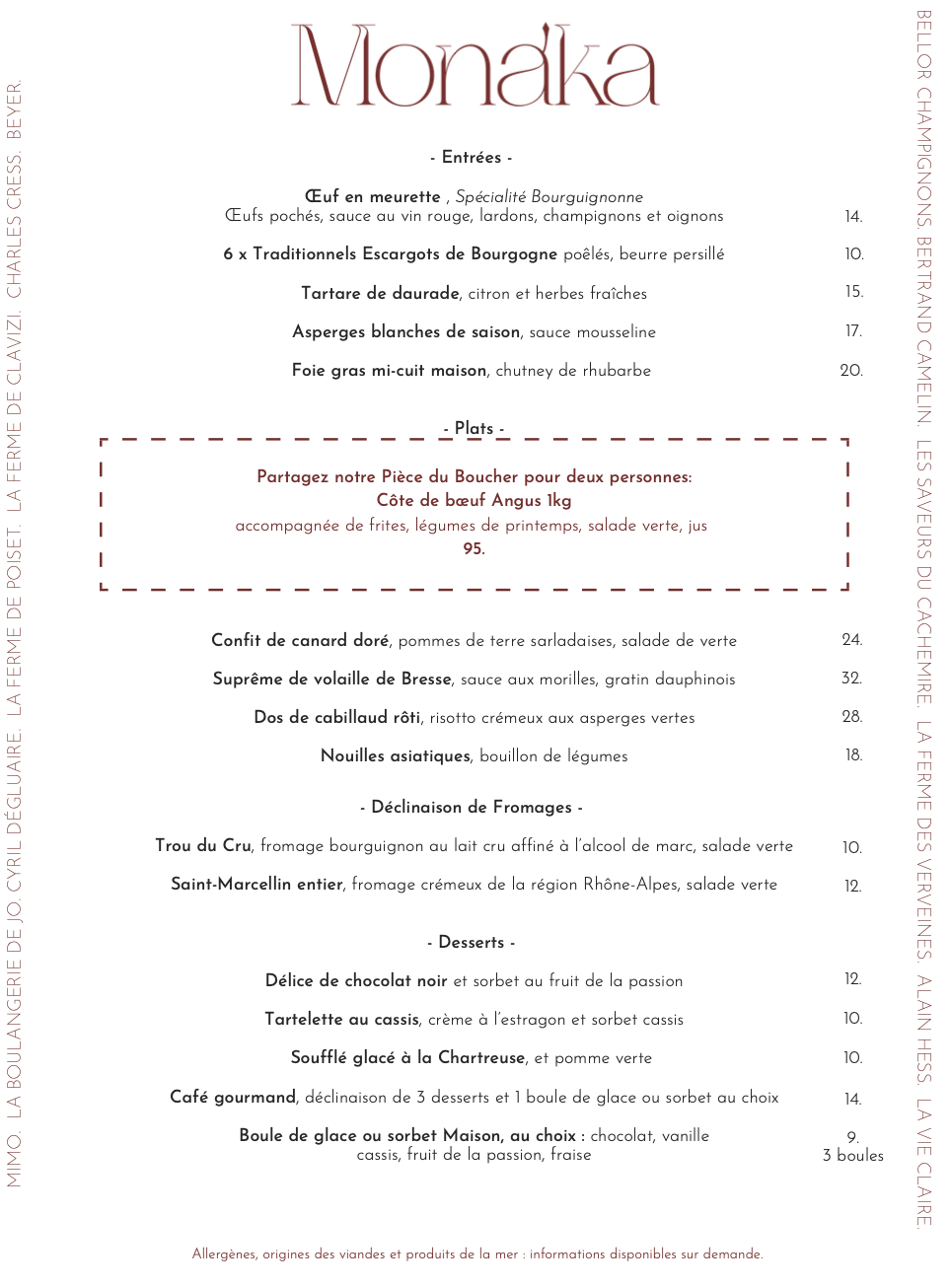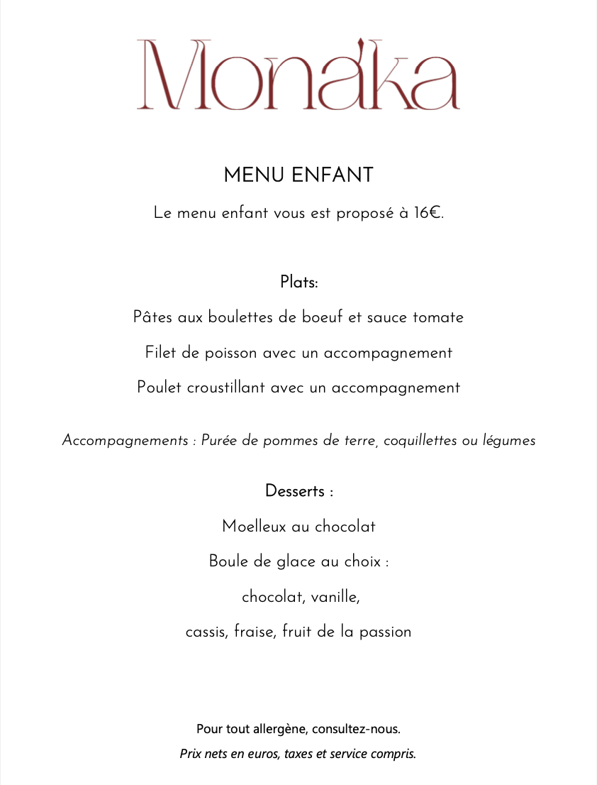Notre carte est disponible uniquement sur les services du diner du lundi au dimanche.